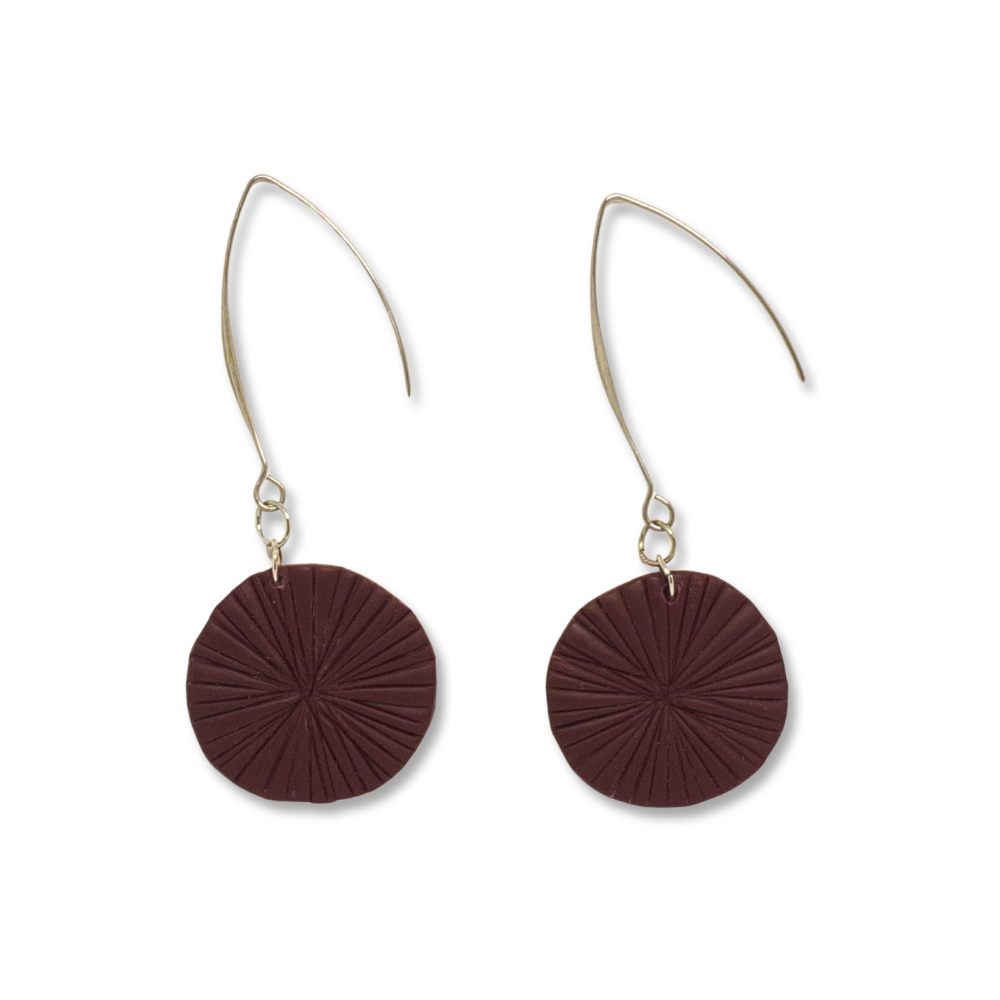 Brinco artesanal em polymer clay com textura inspirada no fuxico. Minimalista, leve e cheio de charme, com gancho em aço inox alongado para um caimento delicado.
