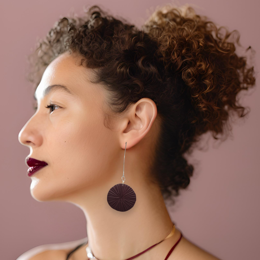 O Brinco Fake Fuxico é uma releitura moderna de um ícone do artesanato brasileiro. Moldado manualmente em polymer clay de tom vinho terroso, ele traz relevos que evocam o franzido do tradicional fuxico de tecido — agora ressignificado em uma estética minimalista e urbana.