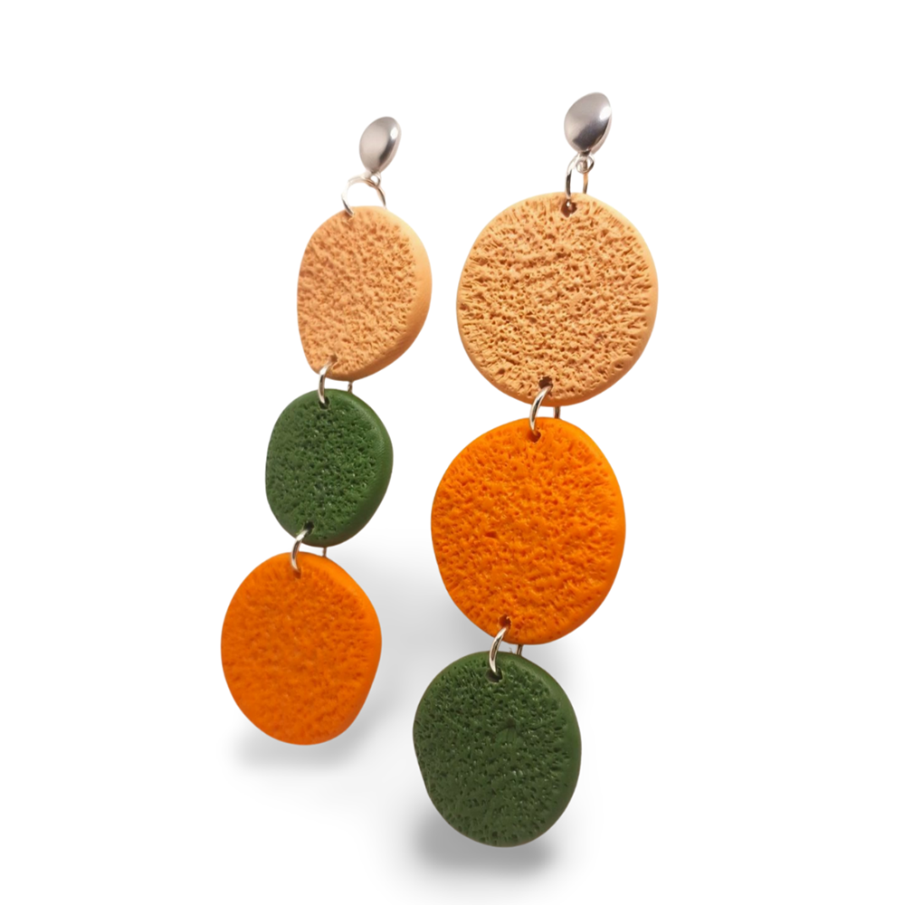 Brinco Orgânico Laranja, Verde e Nude com Pino em Aço Inoxidável